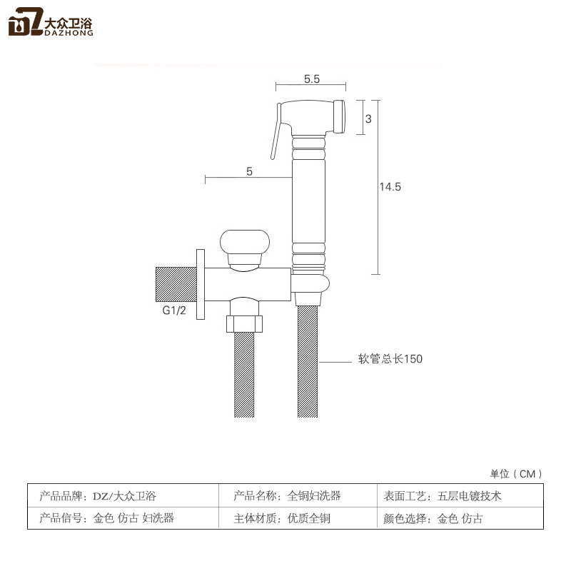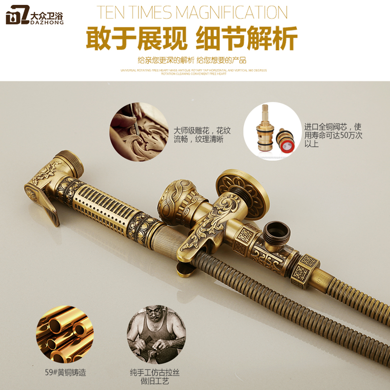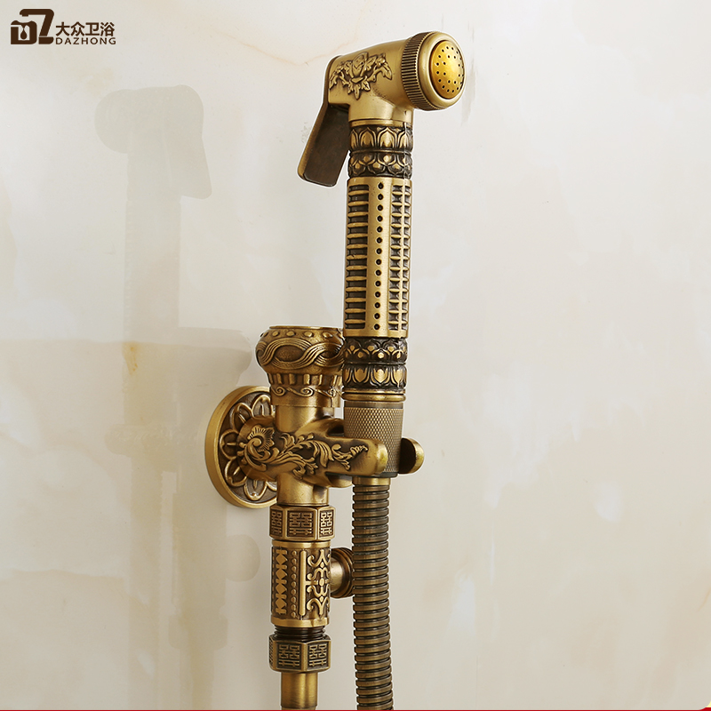 Eurostyle Woman Cleaner Gold Body Wash full copper toilet corner valve spray gun head imitation ancient net-body flushing-cleaner suit