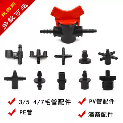 3 5 4 7 hair pipe straight-through three-way four-way accessories Drip irrigation pipe sprinkler irrigation equipment Micro-spray drip irrigation accessories PE pipe