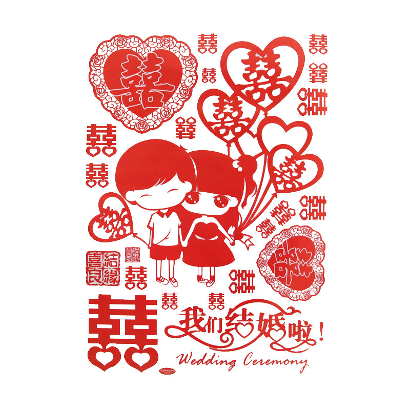 New Wedding Happy Words Laser Static Electricity Sticker Cut Paper Xi Calligraphy Marriage Room Decoration Happy Words With A Happy Character Wedding Festive Joy Character Wedding Celebration With Joy And Happiness