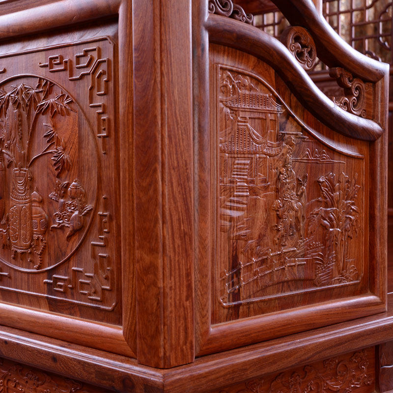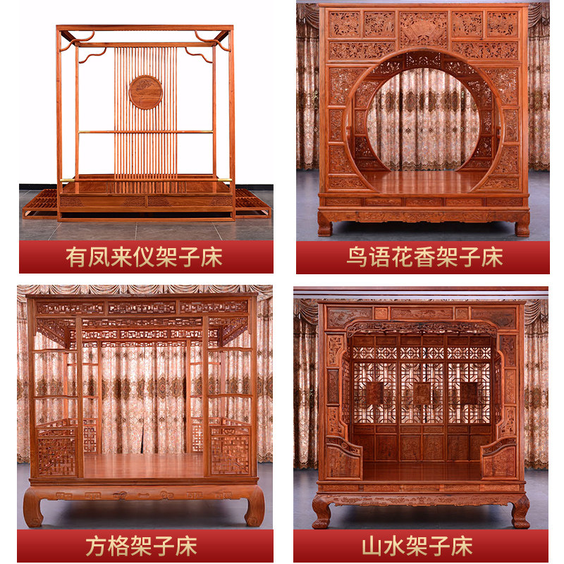 Red Wood Furniture Burmese Flowers Pear Wood Chinese Shelf Bed Solid Wood Plum Blossom Moon Cave Bed Antique Ming Qing one thousand Artificial Walking Bed-Taobao