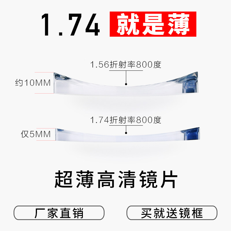 1 67 1 74 Ultra thin HD anti-blue color discoloration height of myopia mirror non-spherical resin lens 2 tablets