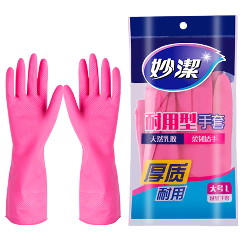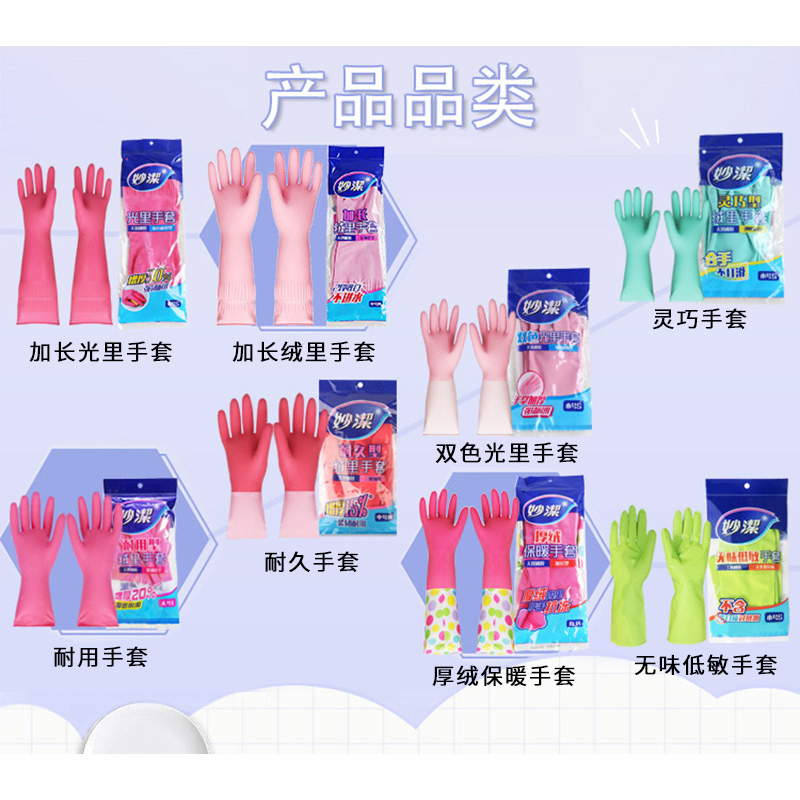 Miaojie velvet gloves Women's household laundry dishwashing gloves Winter lengthened thickened warm durable dexterous type