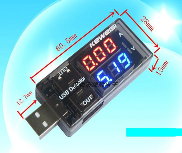 USB current and voltage meter tail plug detection instrument Dual digital display Mobile phone tablet charging safety monitoring instrument