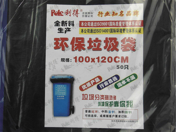 Lide new material 100*120 flat mouth large garbage bag hotel special garbage bag 20 packs