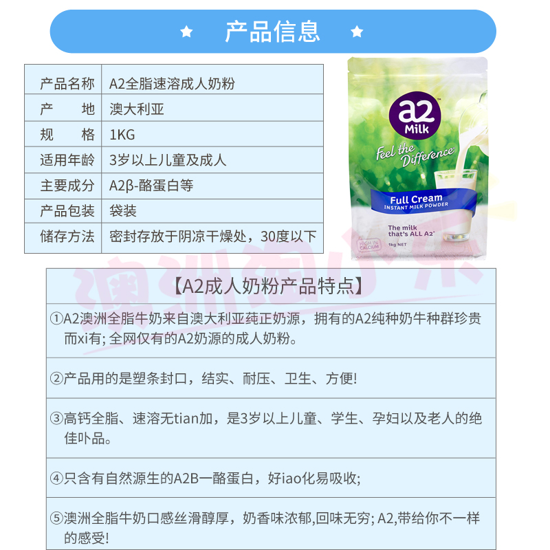Australian A2 adult high calcium full-fat skimmed two optional milk powder without preservative children pregnant 1KG