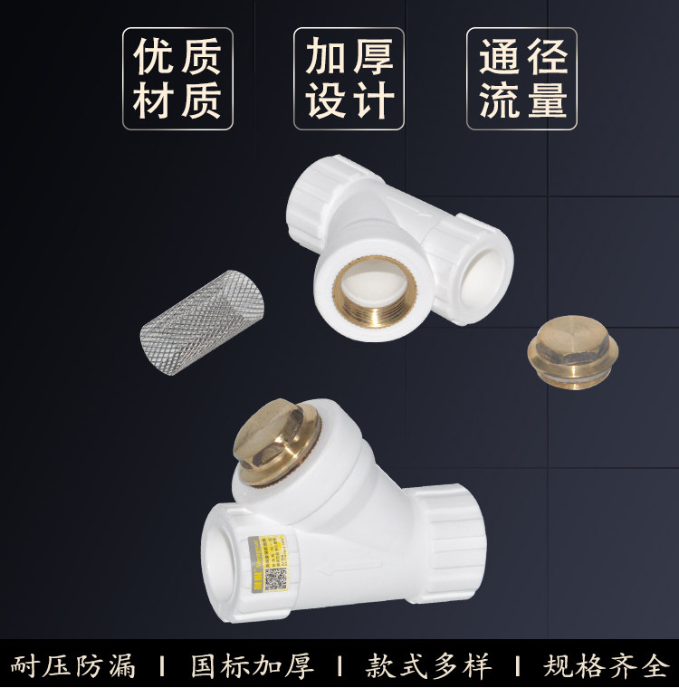 PPR Plumbing Accessories 4 points 6 points 1 inch Y filter thickened Home 202532 Hot-melt tubing accessories Grey green