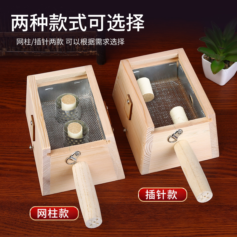 Moxibustion box: moxibustion with 2 holes solid wood warm moxibustion instruments, lumbar and abdomen, back, cervical spine, legs, knee joints