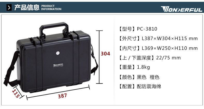 Wandfu PC - 3810 Safe Box Protects Camera Lens Anti - Waterproof Tank with Moisture - proof Sponge