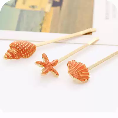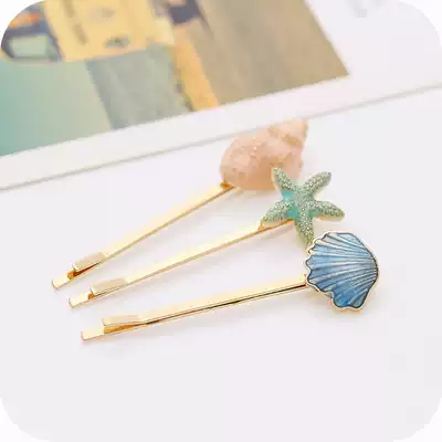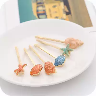 One-word clip jewelry Retro conch shell starfish hairpin side clip Hair accessories headdress clip Hairpin Liuhai clip South Korea