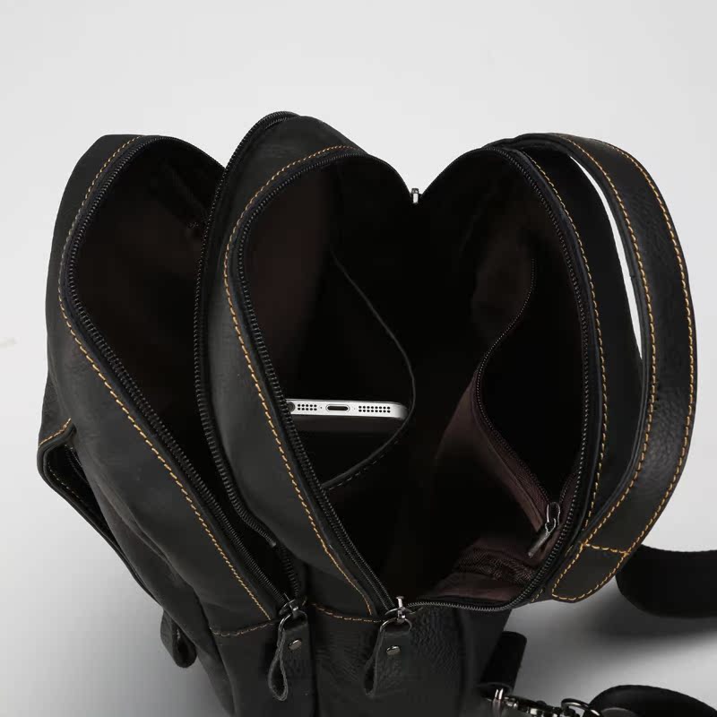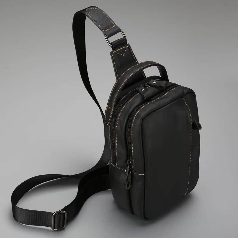 (daily special price) foreign trade genuine leather men's chest bag mobile outdoor sports head layer cow leather chest front bag IPAD bag