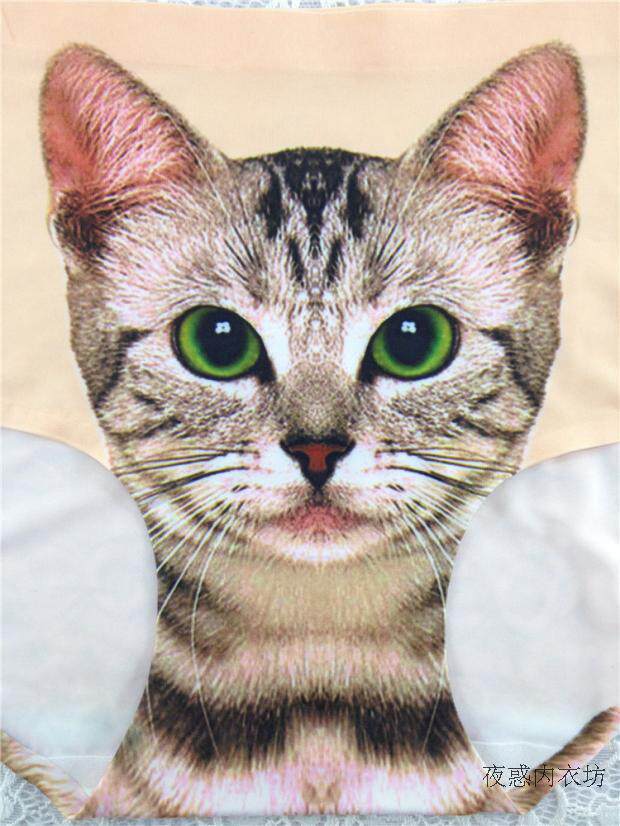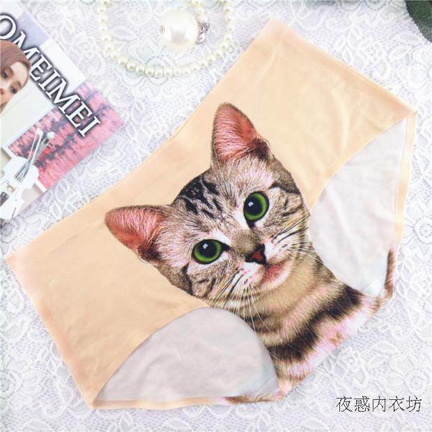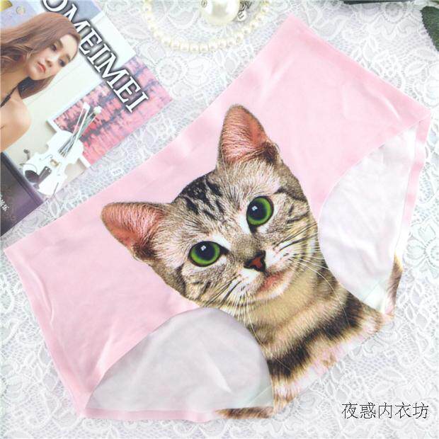 3d kitten cat lady's underwear ice silk one piece seamless cat head pants anti-lighting shorts