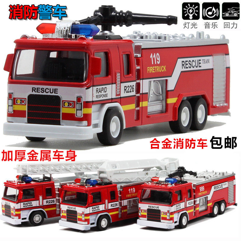 Children's toy fire truck Alloy model 119 Rescue train car model Cloud terraced car water jet hood clothing emulation 1:32