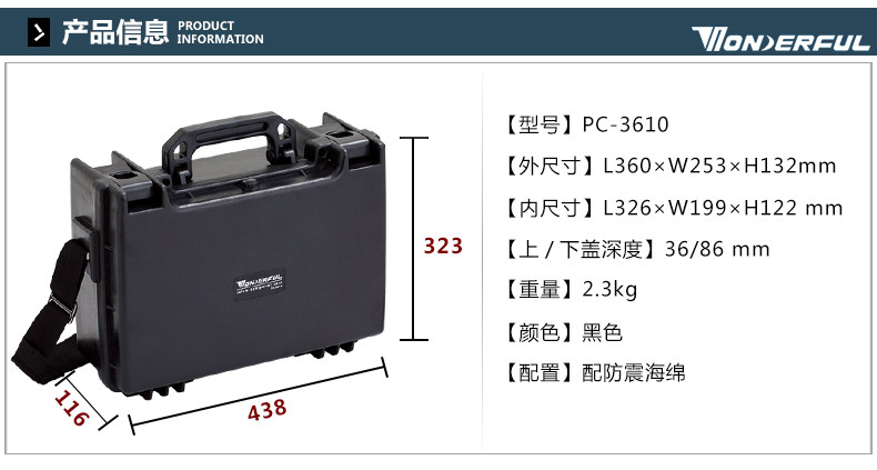 ten thousand blessed PC-3613 safety box protection camera lens pressure resistant waterproof earthquake resistant pull-lever box moisture-proof sponge