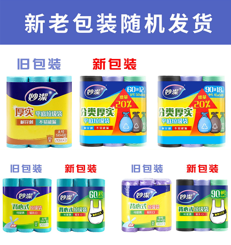 Miaojie garbage bag Household thickened portable kitchen vest type Large medium small student dormitory with flat mouth type