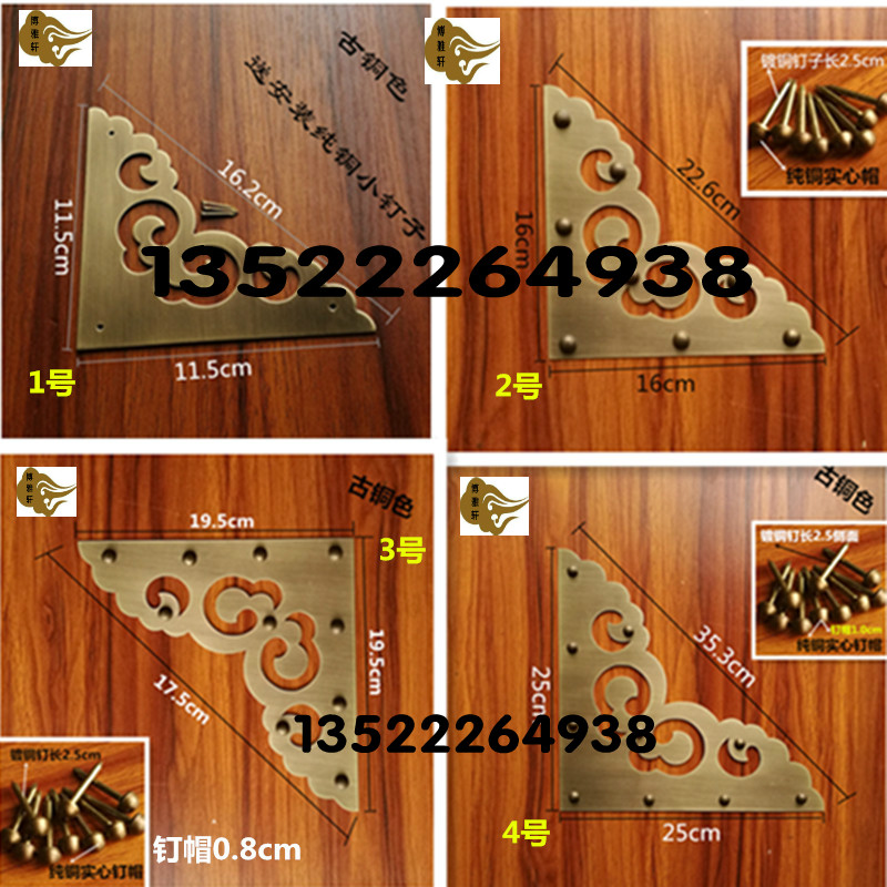 Antique Chinese style pure copper corner protector cabinet door box jewelry box all copper decorative corner flower hollow corner flower nail