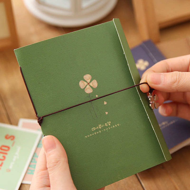 Korean Stationery A6 Pocket Book on Four Leaf Grass Retro Tied Rope Notebook Kraft Carry-on Benson
