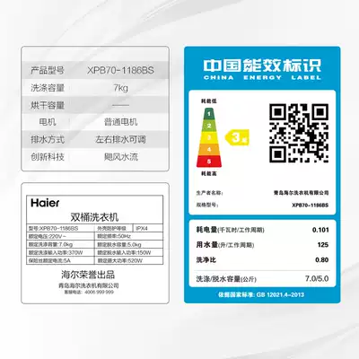 Haier 7 kg kg semi-automatic washing machine small household two-cylinder barrel drying large capacity XPB70-1186BS