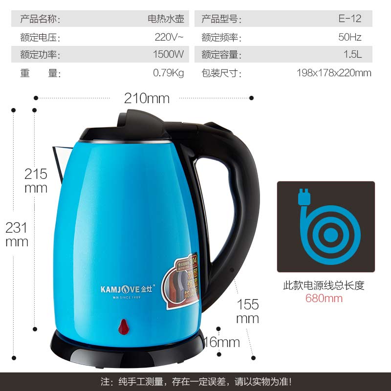 Gold cooker E-12 electric kettle home full steel 304 stainless steel burning kettle Home double layer anti-burn automatic power cut