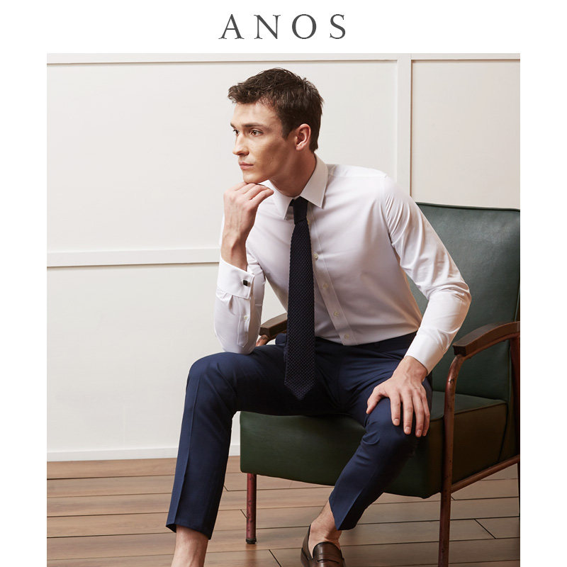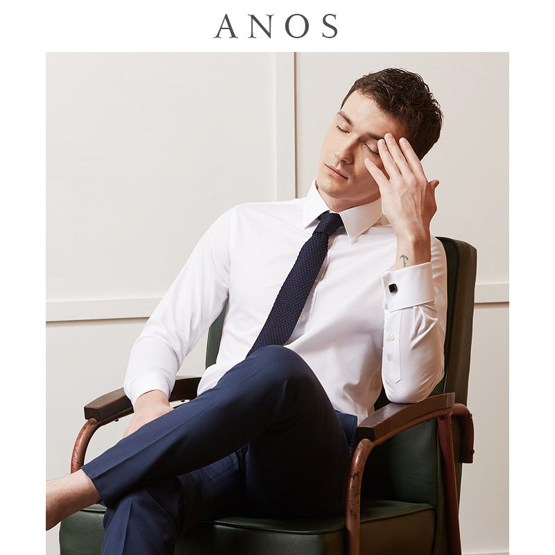 ANOS French shirt Men's long sleeve business dress High-end suit Groom wedding cufflinks Men's white shirt