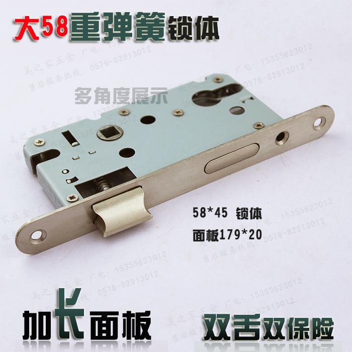Upscale 58 * 45 heavy spring double tongue lock body stainless steel large 58 round lock body lock spare parts door plate hand lock