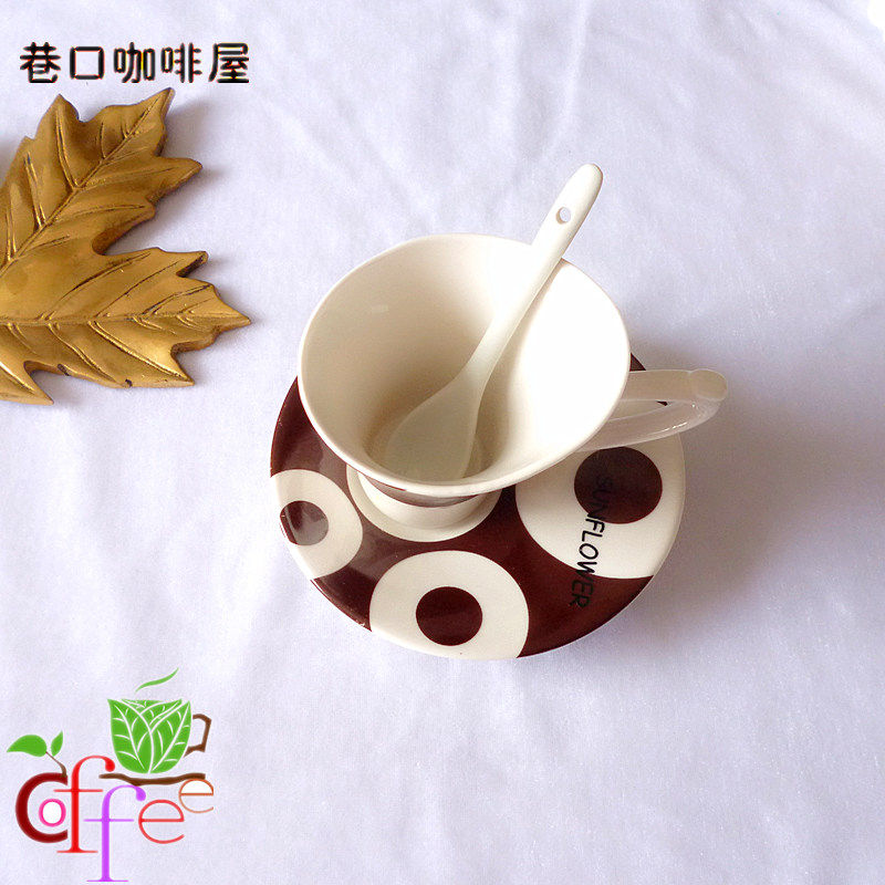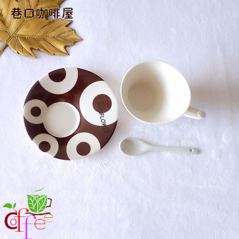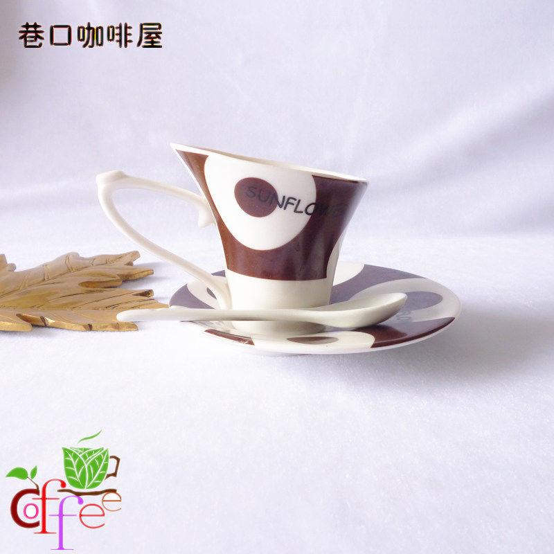 Sunflower European coffee cup overseas creative slope coffee cup coffee cup color ceramic set cup spoon