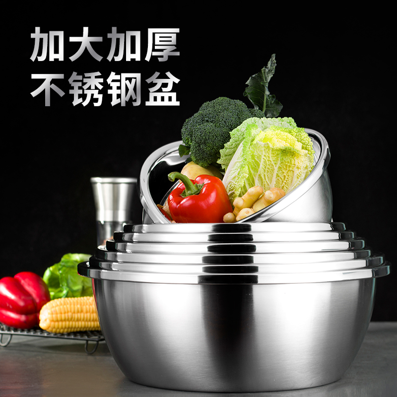 Thickened stainless steel basin with lid Kitchen household raspberry round and face egg washing dish drain basket Drain basin set basin