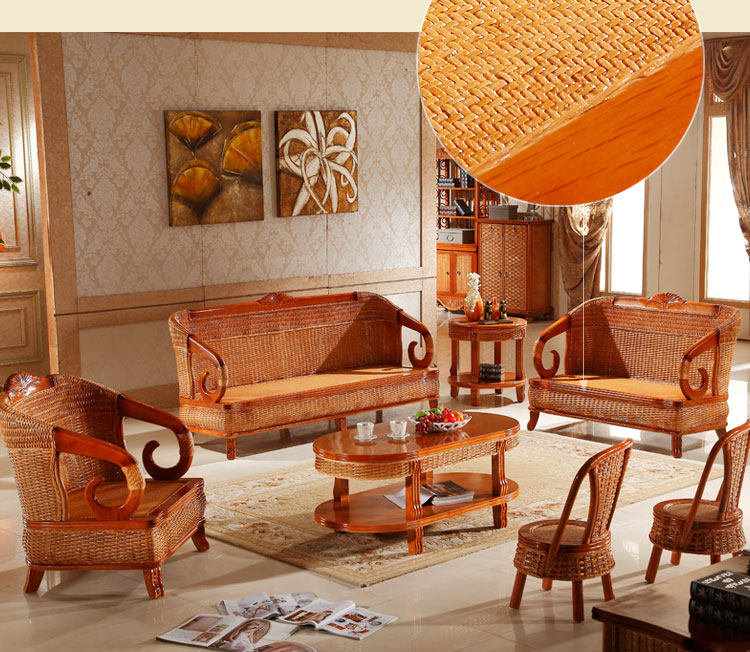 Rattan Furniture Rattan Sofa Living Room Sofa Combination Five-piece Rattan Bamboo Solid Wood Sofa Rattan Furniture Rattan Sofa
