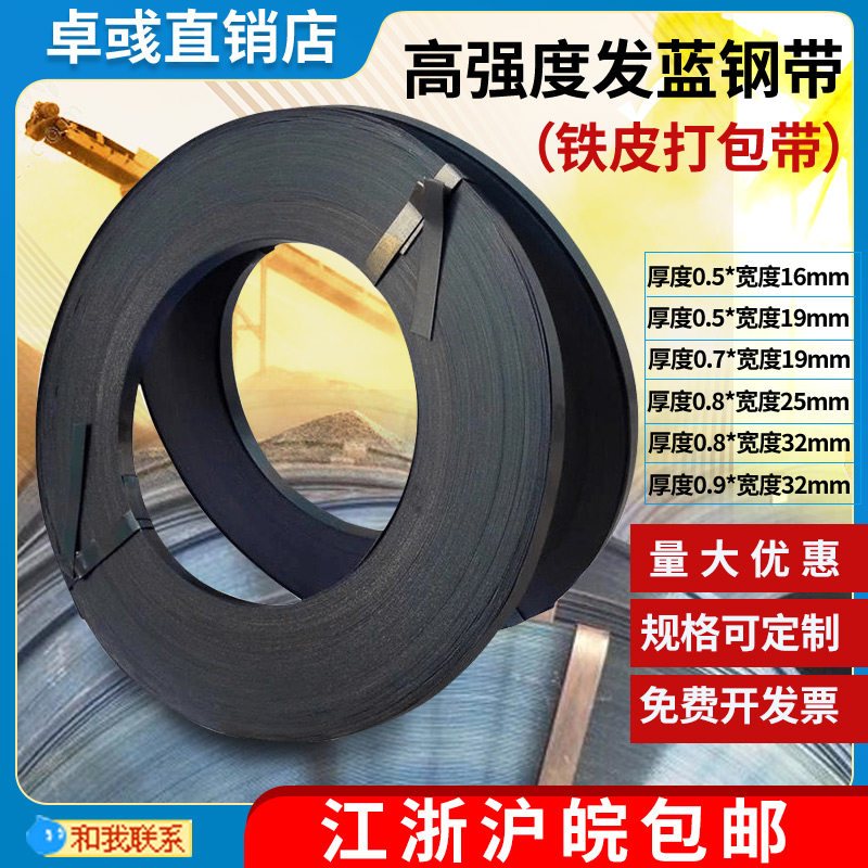 Baked blue iron strapping belt high strength galvanized hair blue steel belt 16mm19mm25mm 32mm iron belt wholesale