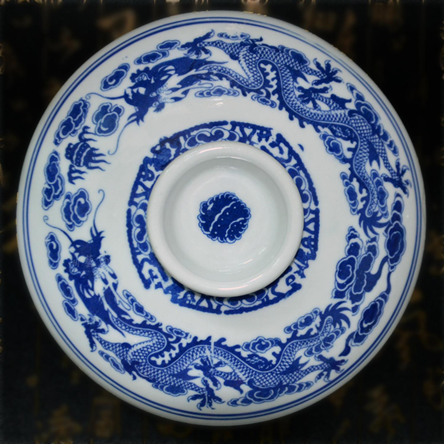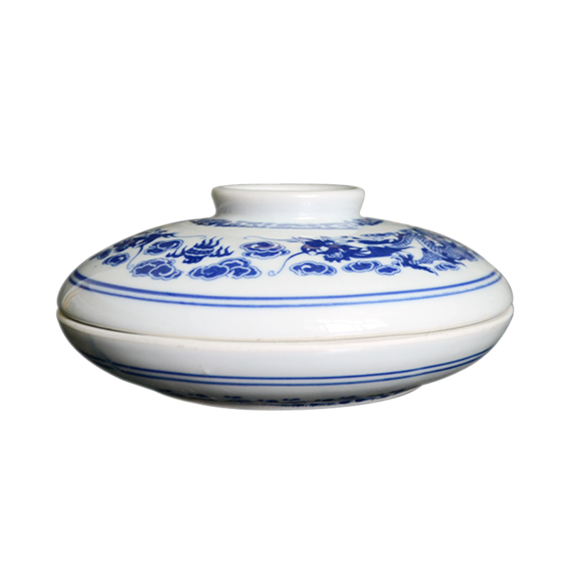 8 inch large Chinese painting palette with cover blue and white green dragon ceramic ink cartridge pigment disc ink pool Yantai