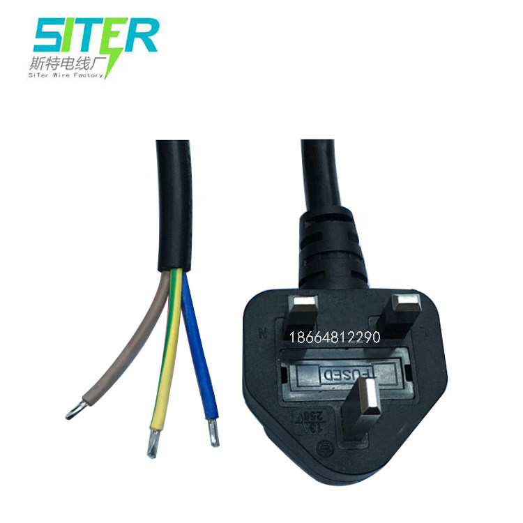 Malaysia British regulation three-way plug with fuse power cord 3*0 75 square all copper British regulation cable