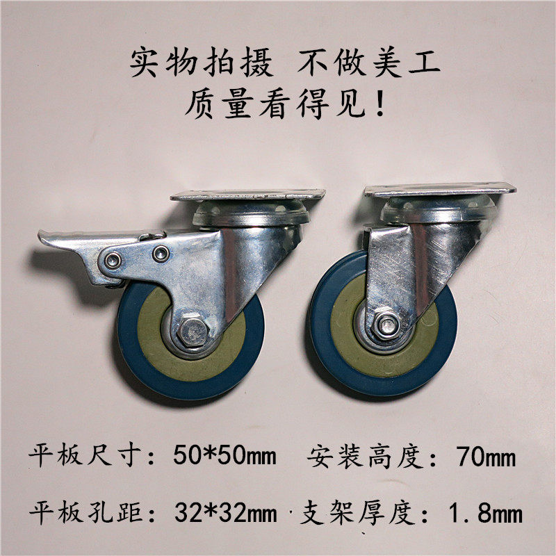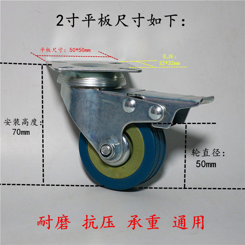 2 inch rubber wheel bottom plate with brake PVC furniture sofa caster trolley wheel reel flower pot tray universal wheel