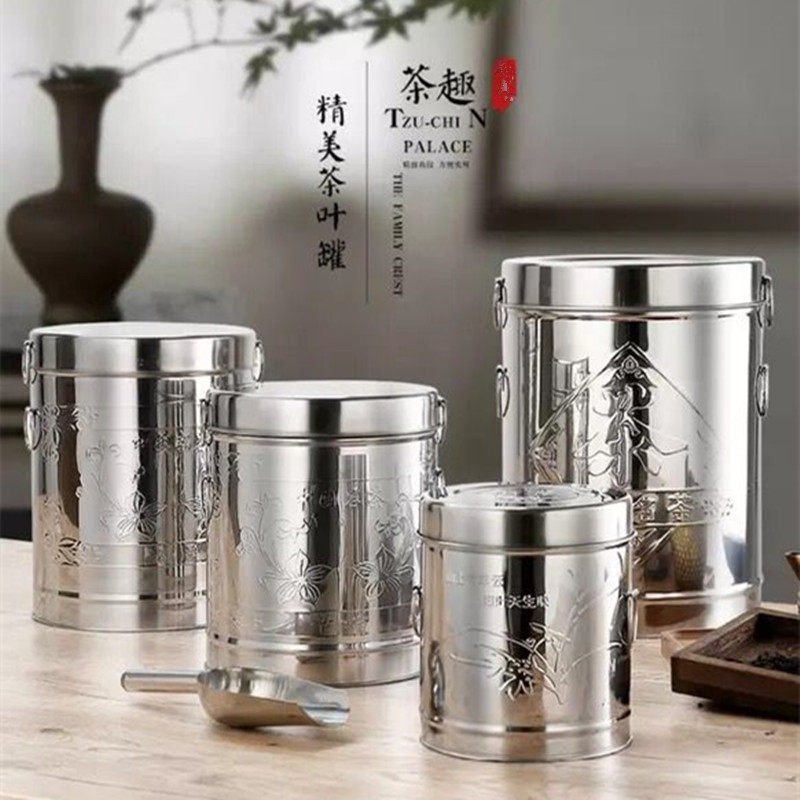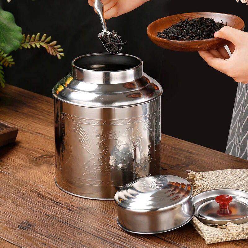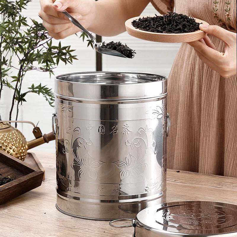 Canned tea stainless steel tea leaf tank storage metal size portable tea tank storage barrel large tea barrel