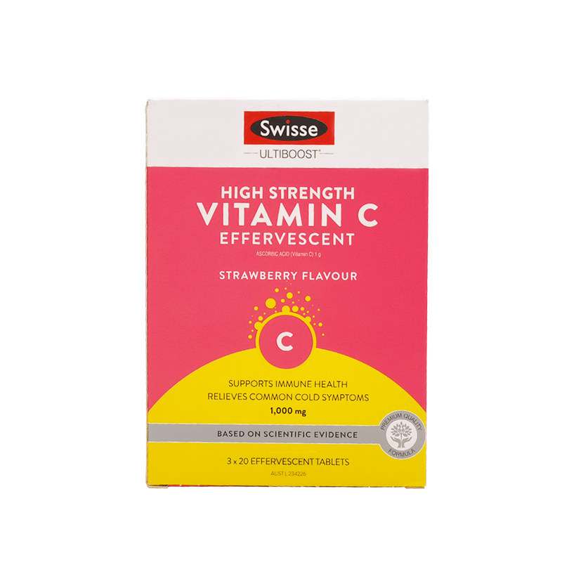 Australia imports swisse vitamin C Concentrated Foaming Ingots VC VicC Strawberry Taste of Men and Women Vitamin 60 Sheet Boxes