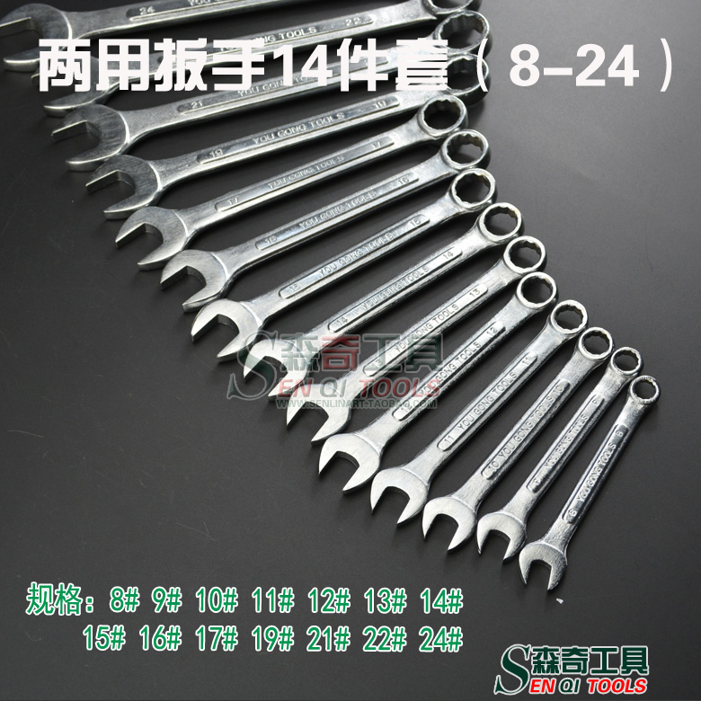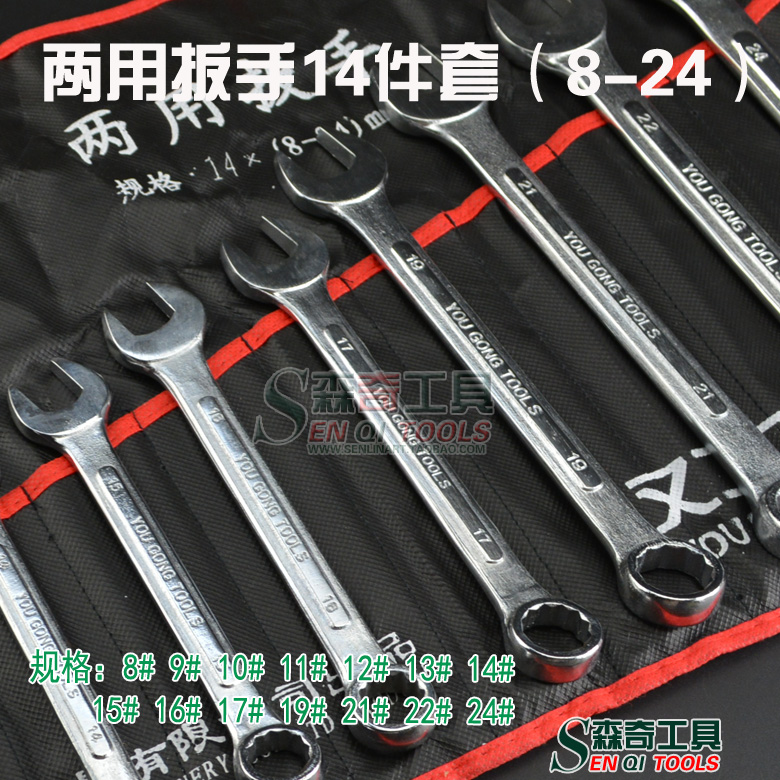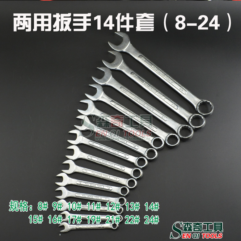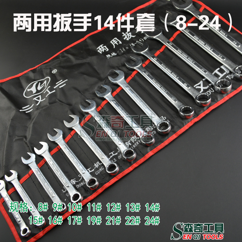 Dual-use 14 piece wrench combined plum open wrench suit bagged combined screw wrench opening plum wrench