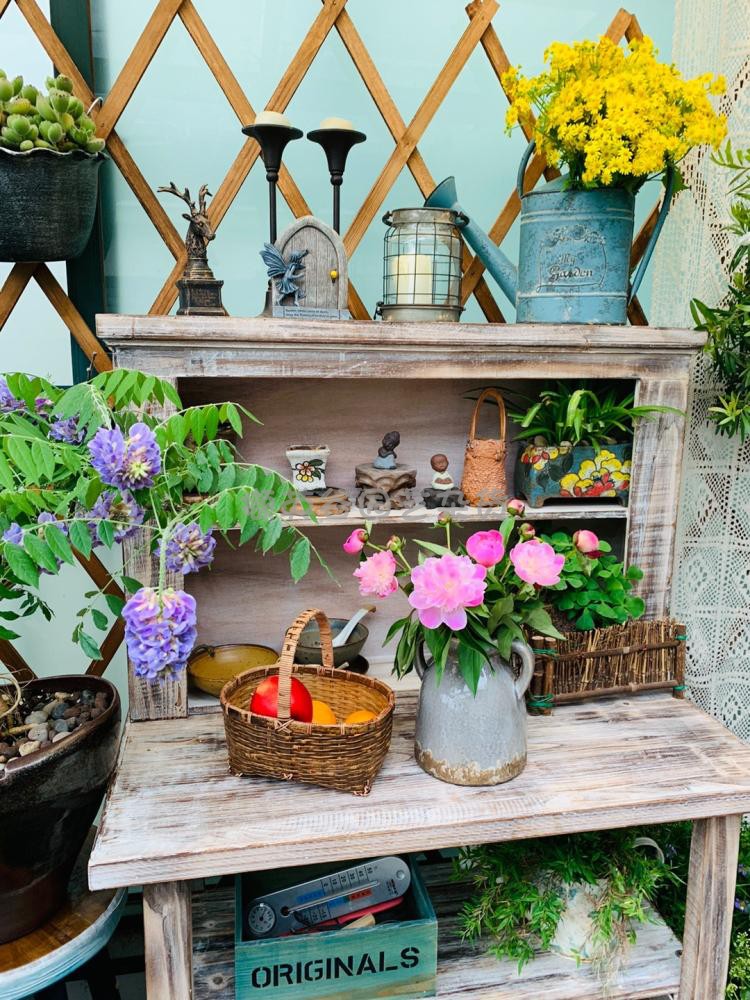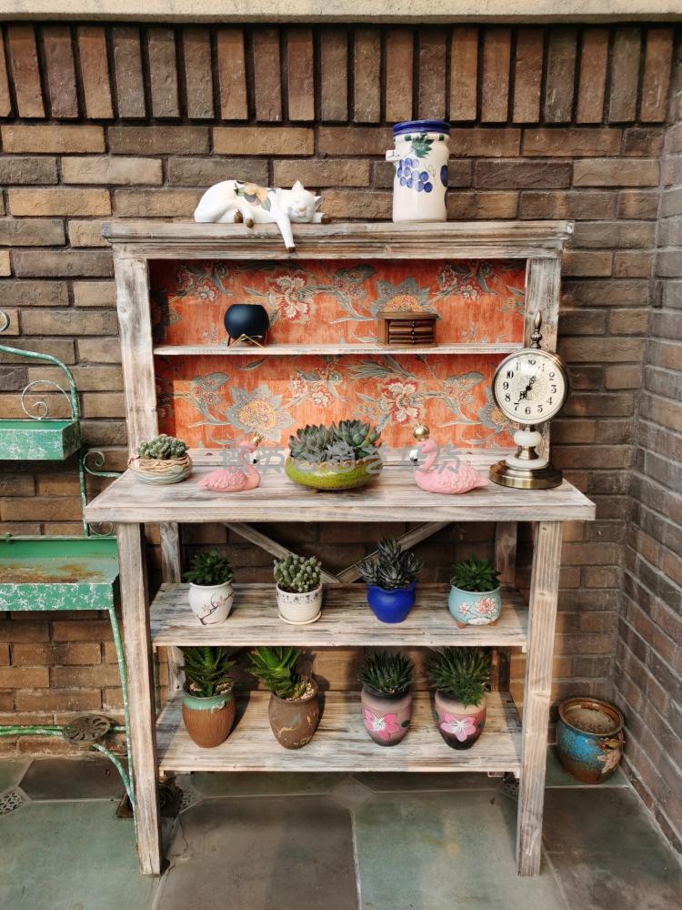 Outdoor flower shop solid wood retro succulent flower rack storage cabinet garden art multi-layer homestay furniture old grocery table
