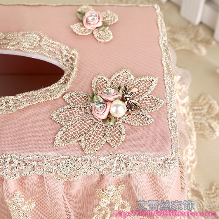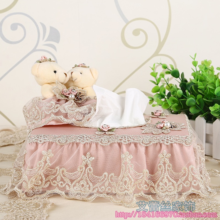 Tissue box High-grade lace edge computer embroidery Home decoration Napkin box Cute bear living room bedroom with fabric draw