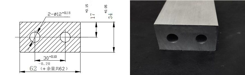 With spot square tube 62 * 34 * 12 inner hole square double-hole aluminium extruded material double-hole aluminium tube shunt tube air flow tube