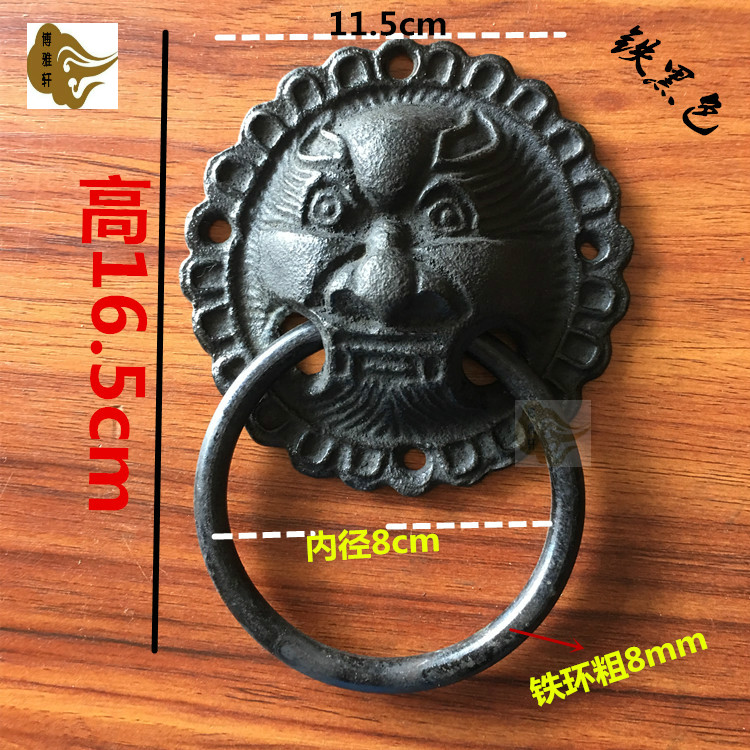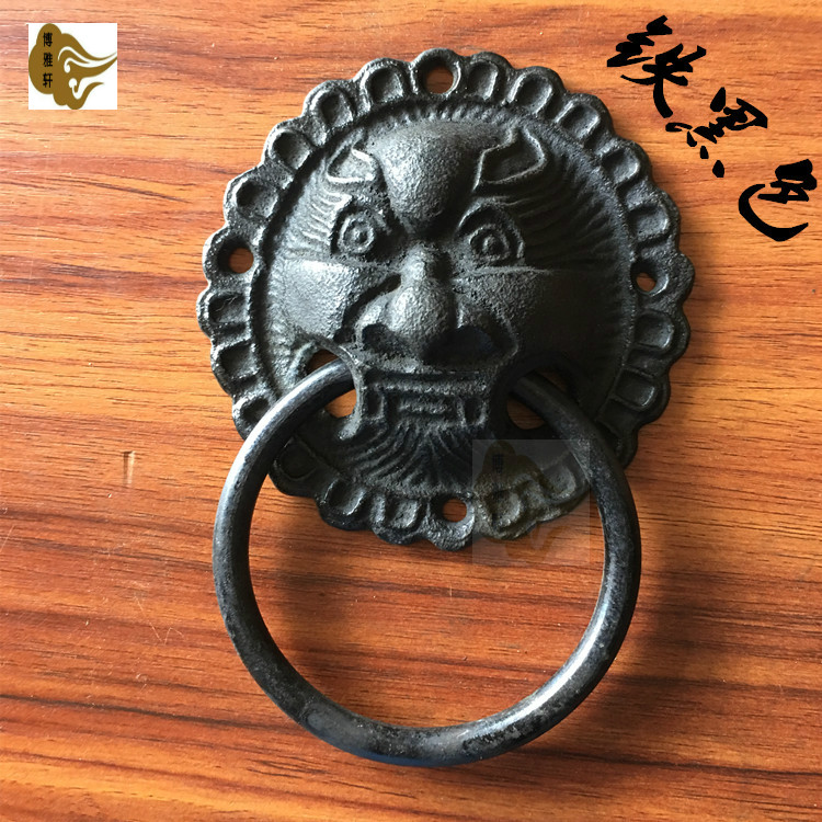 Large Door Handle Classical Cast Iron Lion Head Door Ring Antique Furniture Copper Accessories Door Lock Chinese Cabinet Drawer Handle