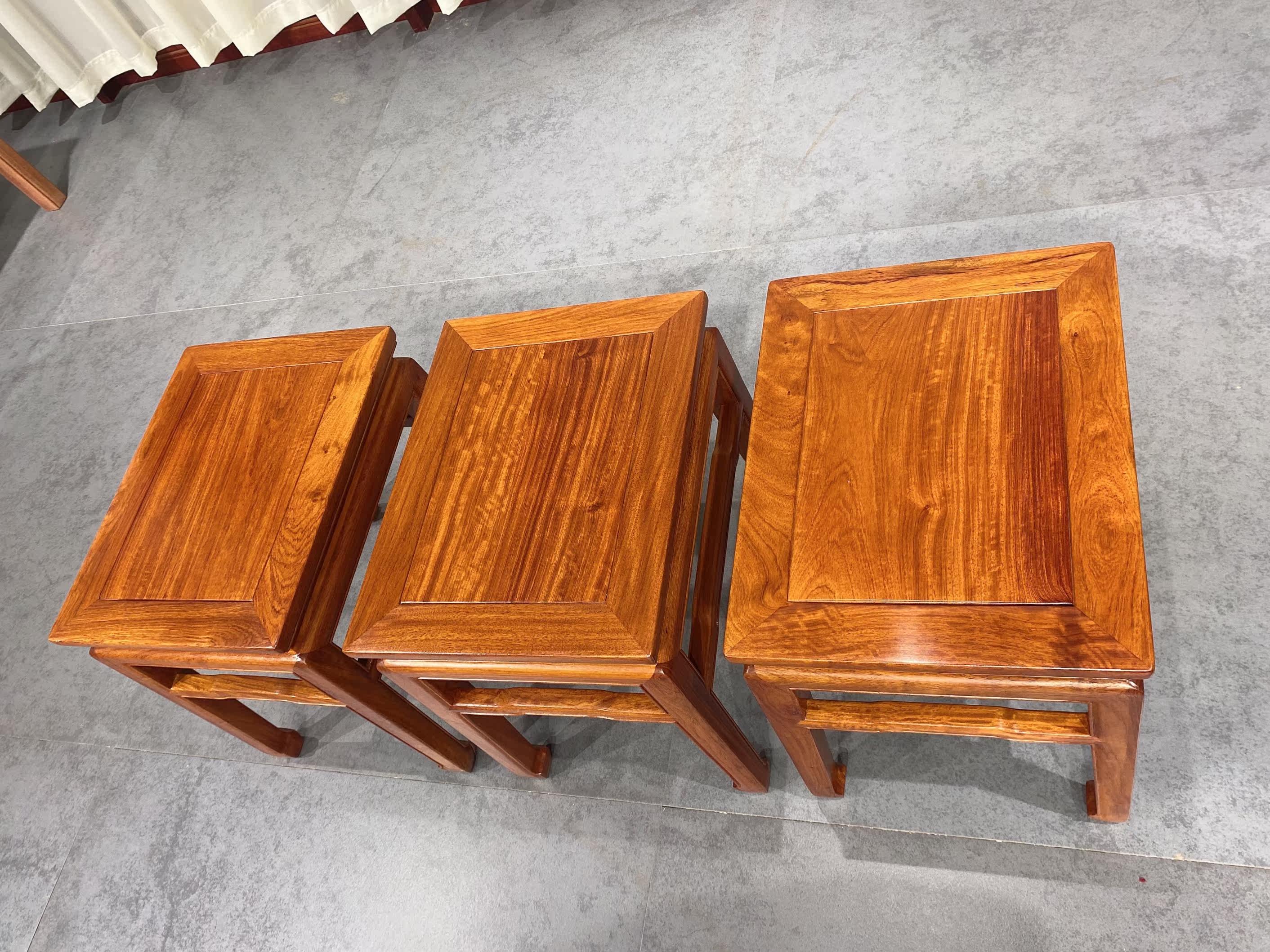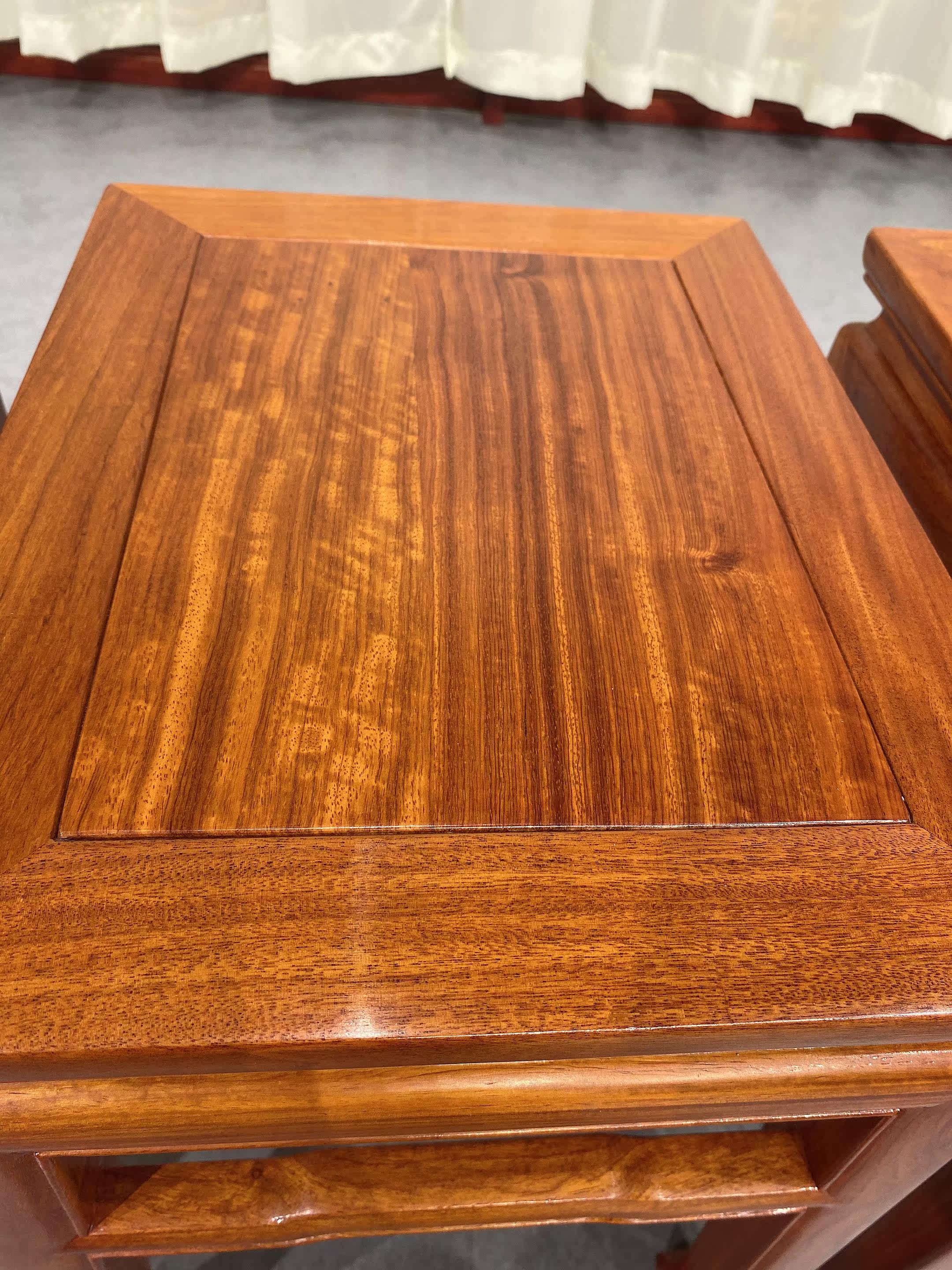 Fulian sky red wood small stool Ming style Myanmar flower pear wood changing shoes dwarf stool mortise and tenon and log beam waist horseshoe foot square stool
