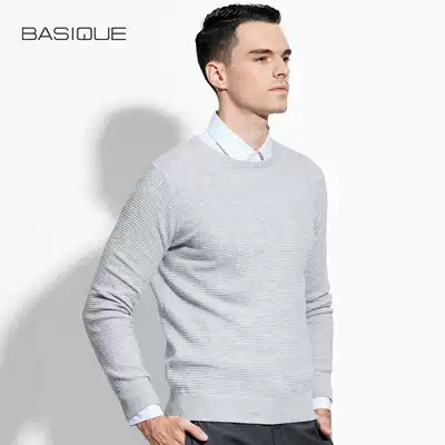 Yuanben three-dimensional striped round neck slim sweater autumn men's casual cotton pullover sweater