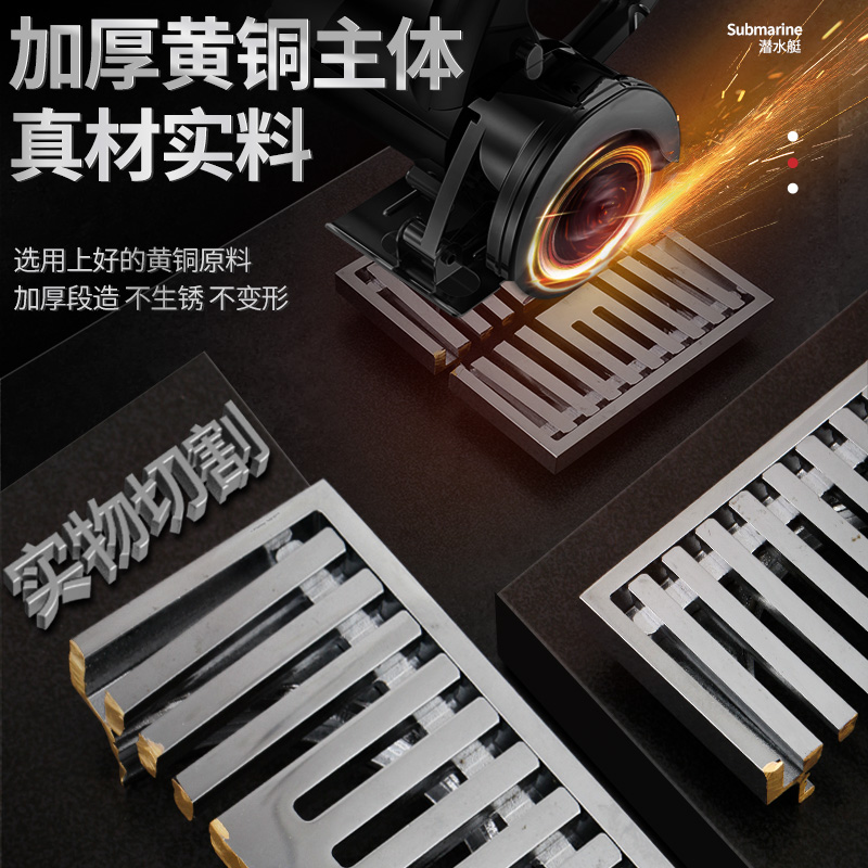 Submarine floor drain full copper deodorant strip invisible bathroom universal ultra-thin shower official flagship store official website