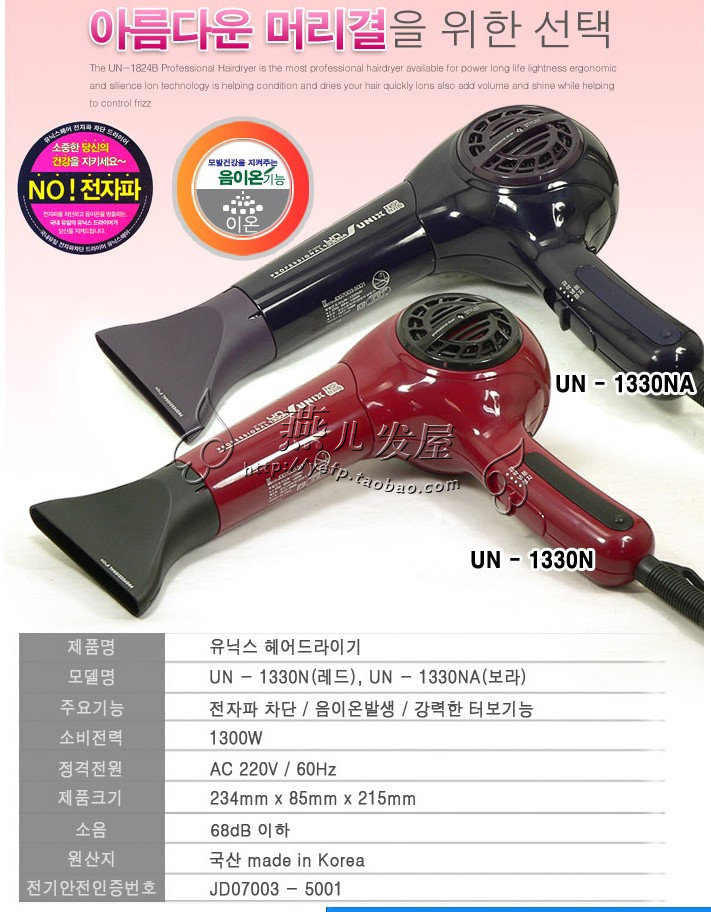 Korean original Younis UNIX-1330N NA hair styling hair dryer professional negative ion hair dryer