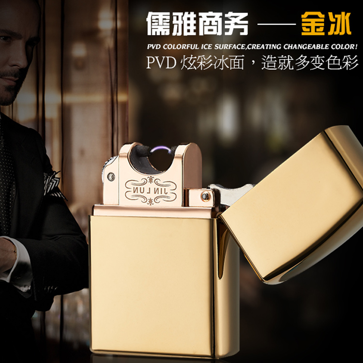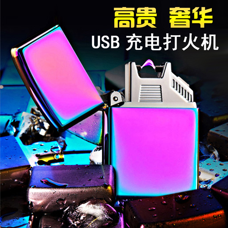 usb rechargeable windproof induction creative lighter ultra-thin men's black ice laser arc pulse electronic cigarette lighter