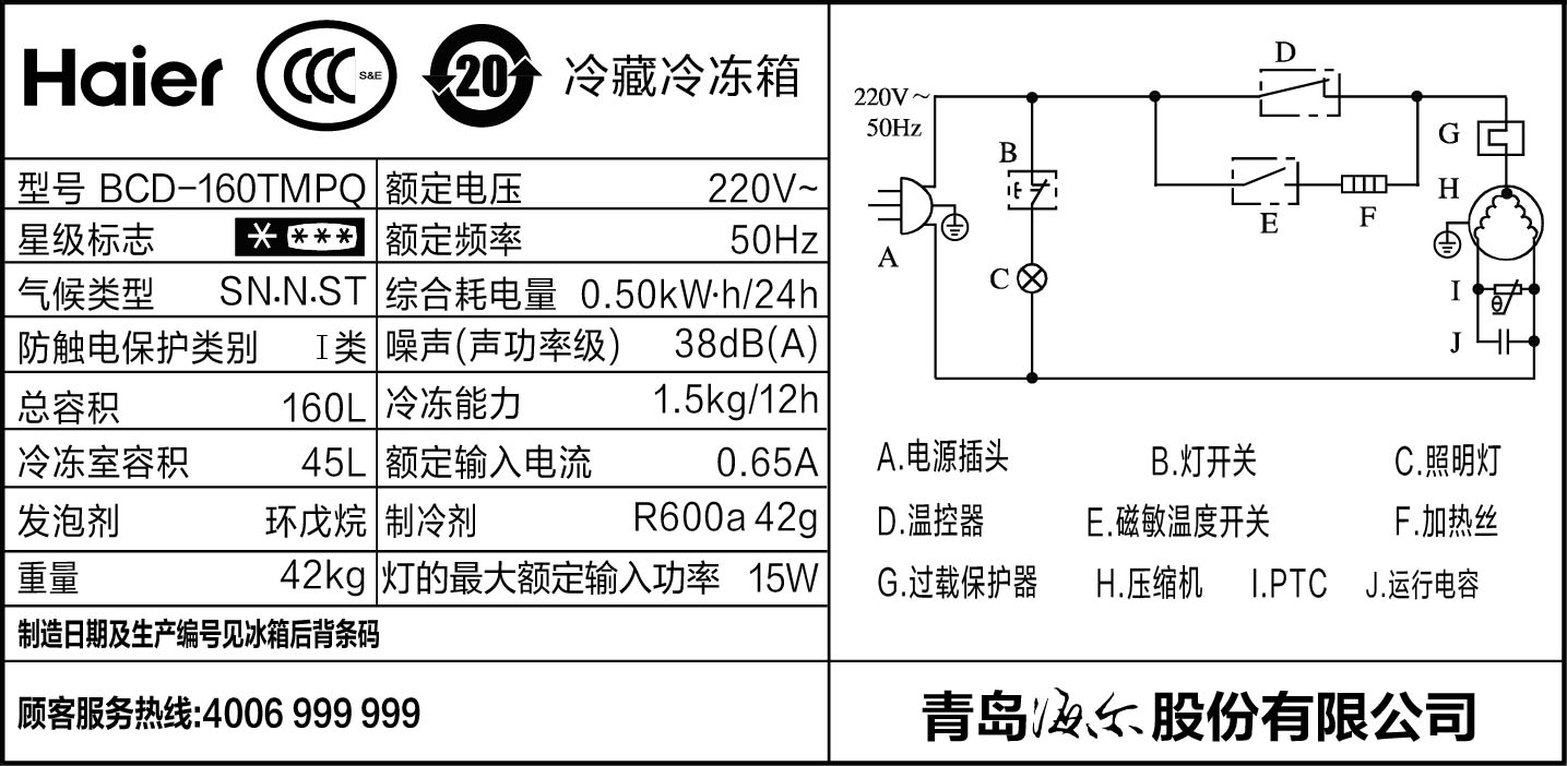 Haier Haier 160 liters home office dormitory small refrigerator energy saving double door refrigerator freezer
