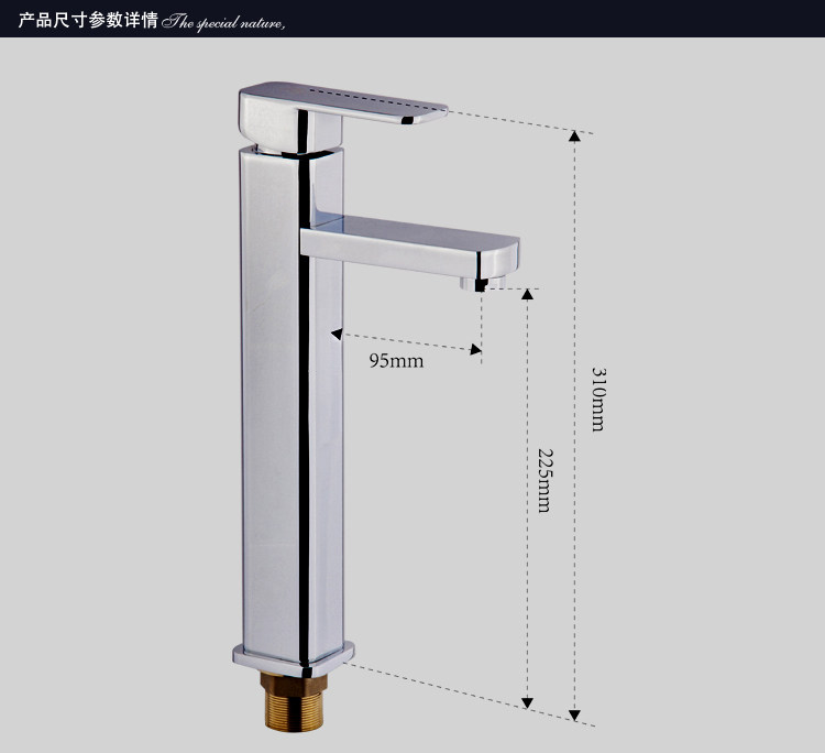Tall square faucet without piping Tall square faucet with 60 cm pipe Tall square faucet with 80 cm pipe
