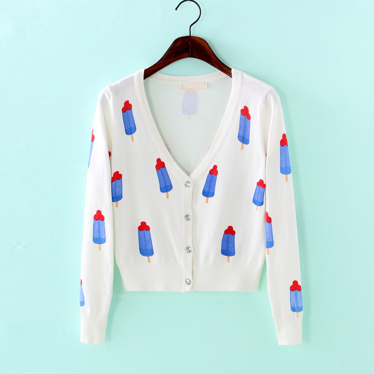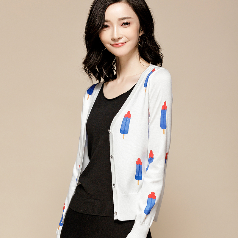 V Collar Needles Jersey Woman Cardiovert 2020 New Spring Autumn Season Women's Clothing Short small jacket Long sleeves embroidered with white blouses