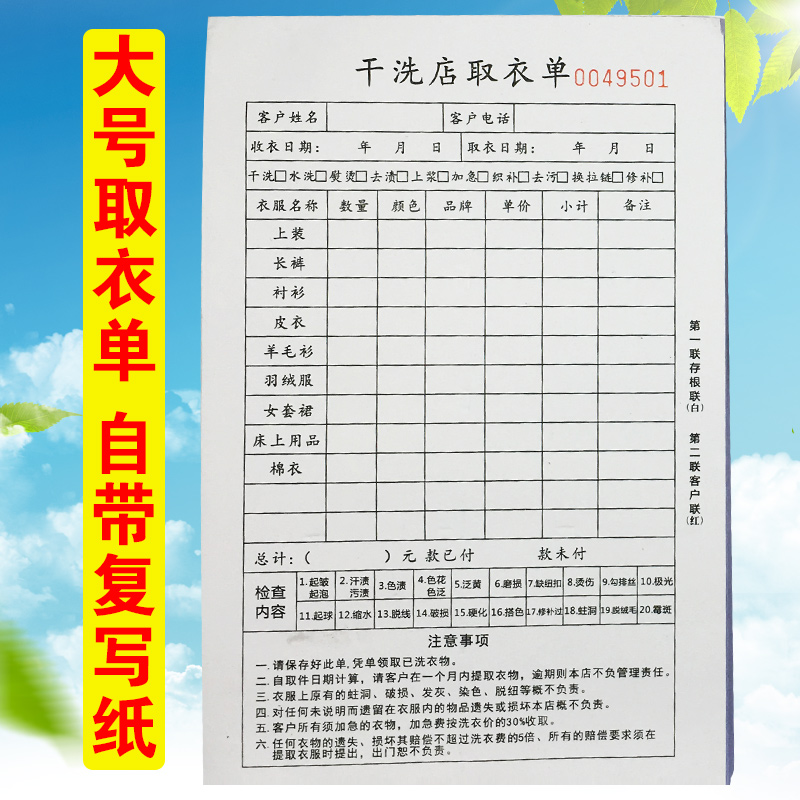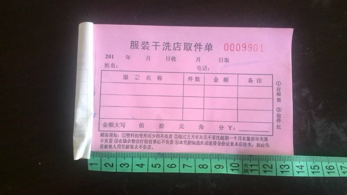 General Purpose Dry Cleaning Shop Take-Out Single Laundry Item Single Laundry Shop Receipt Collection Bill No Carbon Invoice Taking Voucher Documents