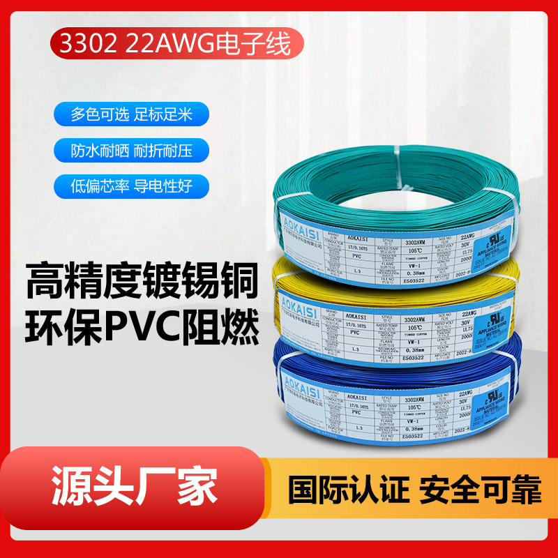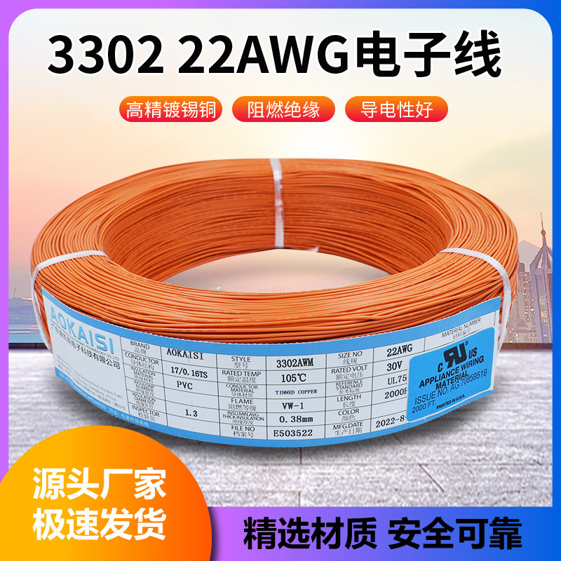 Factory spot positive standard UL3302#22AWGAmerican electronic wire 17 0 16TS 610m terminal cable
