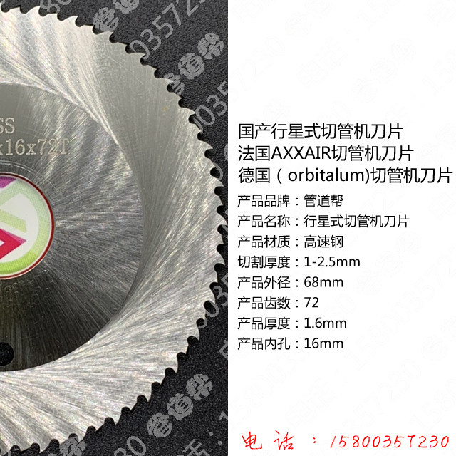 Planetary tube cutter blade HSS 68*1 6*16*72TGF tube cutter AXXAIR tube cutter positioning hole