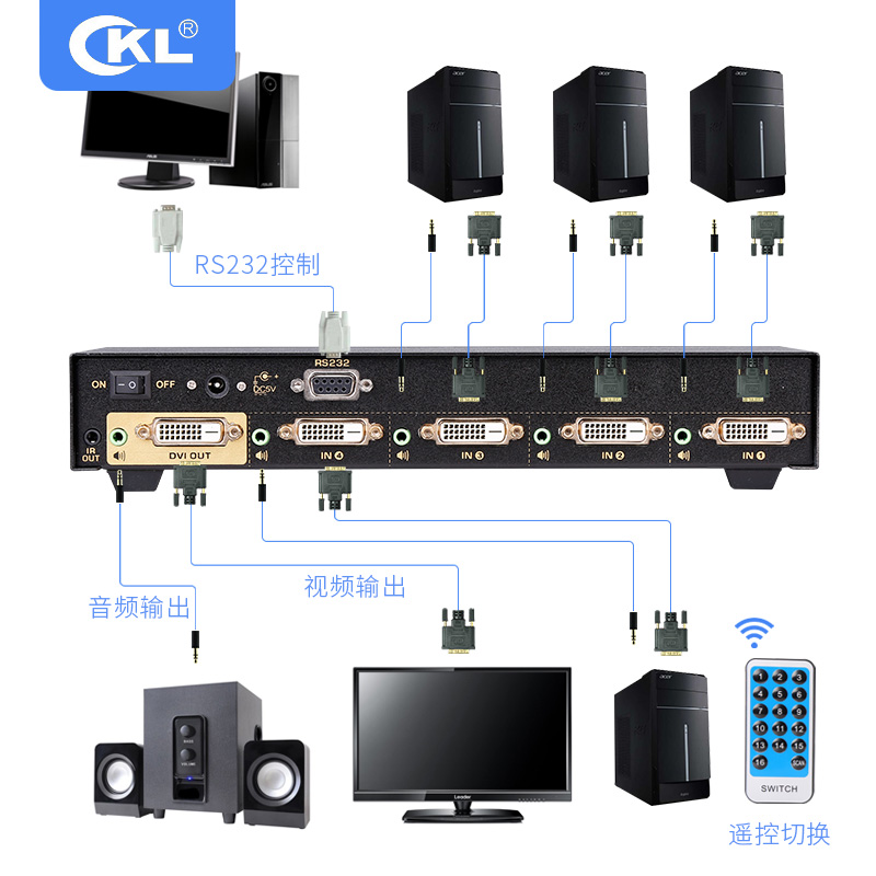 DVI switcher 4 in 1 out HD switcher 24 1 automatic switching timing switching remote control CKL-41D